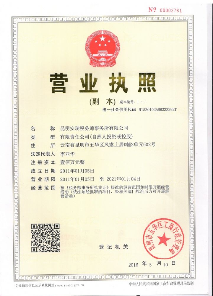 · 安瑞事務(wù)所是云南省地方稅務(wù)局的入圍事務(wù)所之一